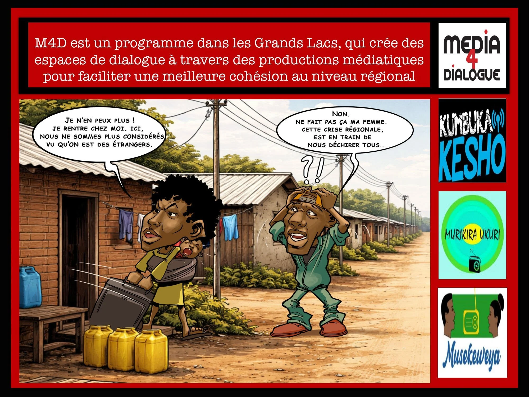 This week on M4D M4D latest Mar 29 Written By Susanne Schotanus This is an overview of the programs produced within Media 4 Dialogue (M4D) this week. Kumbuka KeshoMusekeweyaMurikira Ukuri Slammer Fédérateur - UgandaSlammeur Fédérateur - RD Congo Ukweli ao UongoDébats radio / Radio debates / RD Congo & Uganda Susanne Schotanus